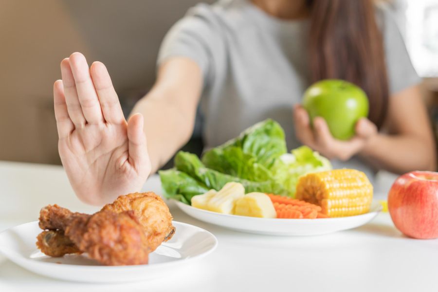 unikać podjadania i pustych kalorii – produkty bogate w błonnik zapewniają dłuższe uczucie sytości;